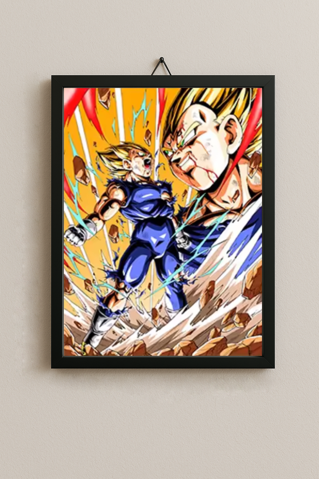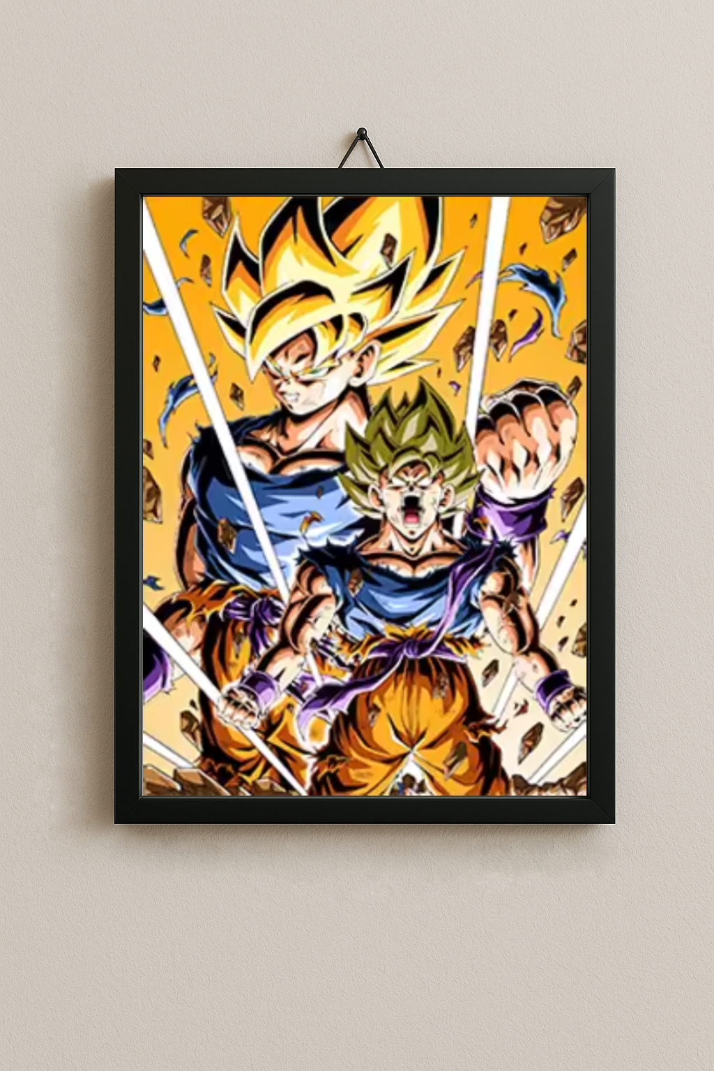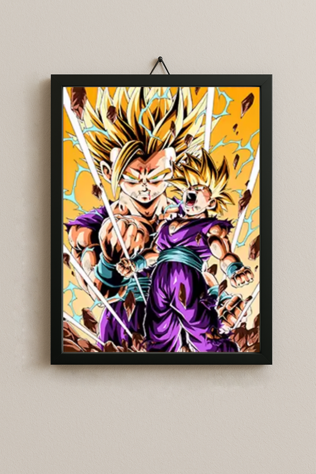Revive uno de los momentos más épicos de Dragon Ball Z con este cuadro lenticular 3D de Gohan Super Saiyan 2, acompañado de Goku y Vegeta. Cada ángulo revela una escena diferente con un efecto espectacular.