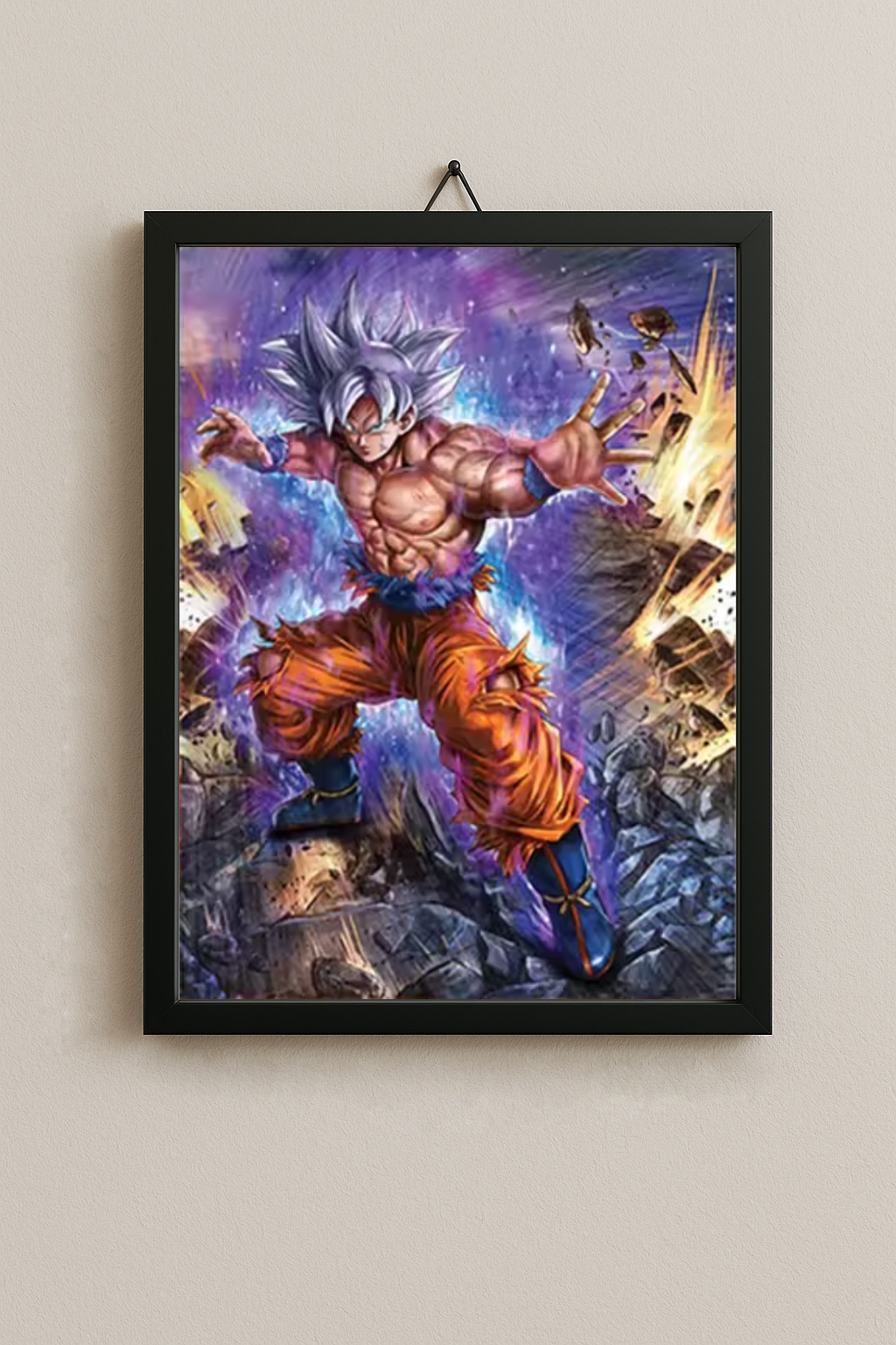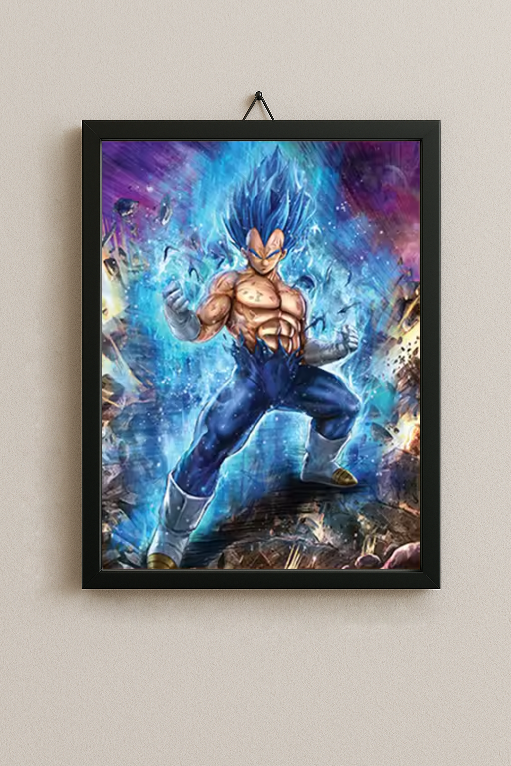Este cuadro lenticular 3D reúne a dos de los guerreros más fuertes del universo en sus transformaciones más imponentes: Goku en Ultra Instinto y Vegeta en Super Saiyan Blue. Cada ángulo revela un nuevo estallido de poder con un efecto dinámico y lleno de energía. Una pieza decorativa que transforma cualquier pared en un escenario épico y que hará brillar tu sala gamer, estudio o habitación con pura intensidad Saiyan.